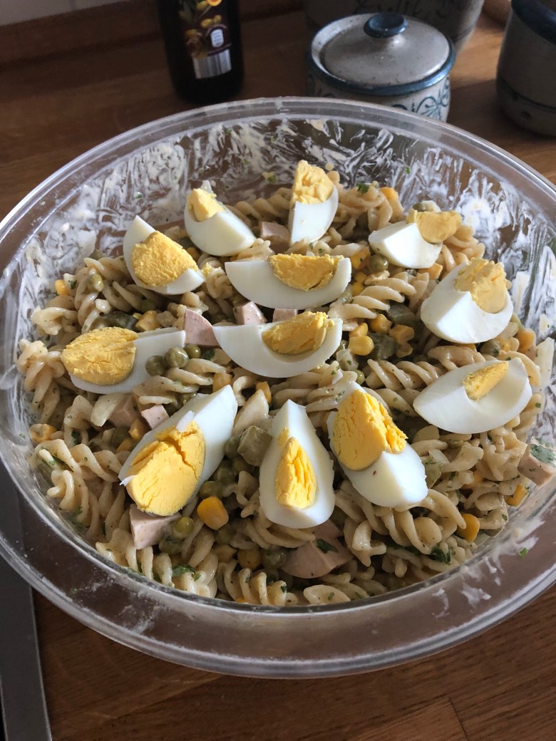 Lecker. Aber es wäre mir echt lieber, die Sonne würde hier endlich untergehen und das kochende Nudelwasser würde nicht die Küchentemperatur auf 33 Grad hochtreiben. Kannst du mir bitte was vom fertigen Produkt rüberschicken. Wenn’s geht gekühlt bitte. Danke! 😦