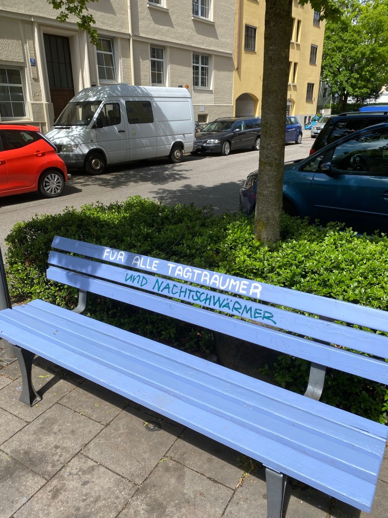 Oh, was für eine schöne Idee. So eine Bank möchte ich später auch vor unserem Grundstück stehen haben.